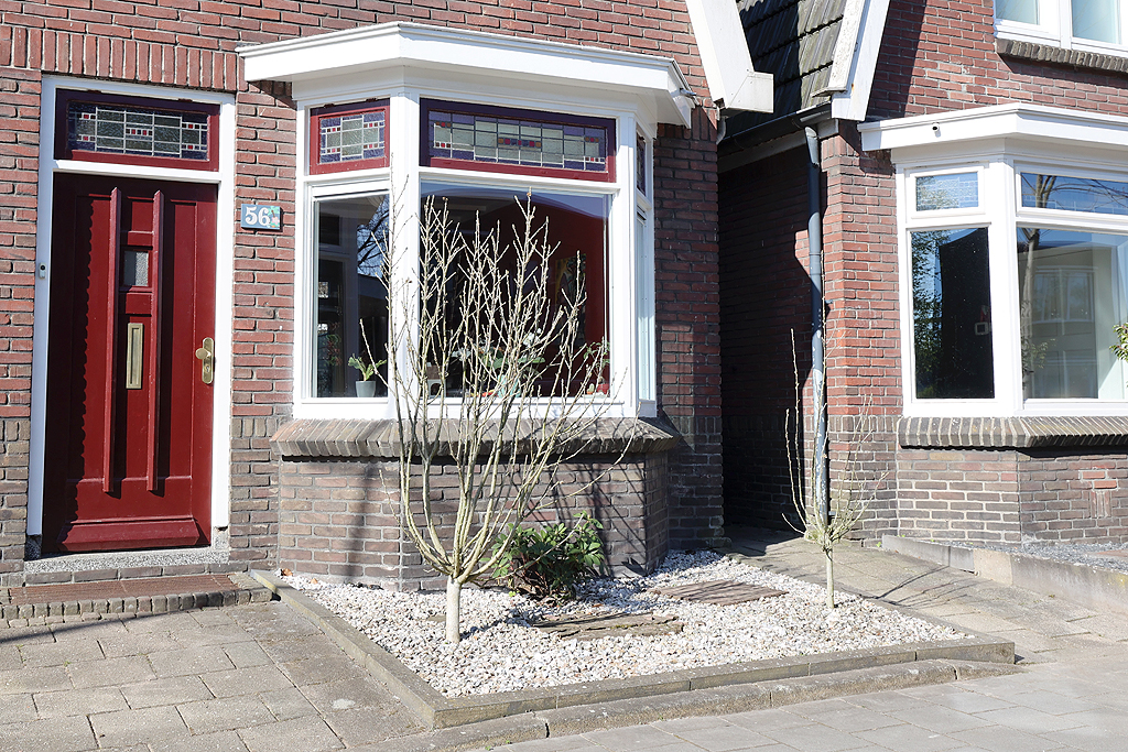 Het platte dak van de achterbouw is vernieuwd in 2024 en is de schoorsteen is volledig nieuw gevoegd en geïmpregneerd. Verder in de tuin ligt een kleine vijver achter een afsluitbaar deel. Het voorste gedeelte is met een hek met poortje gescheiden van het achterste gedeelte. Over het bruggetje loopt u verder naar achteren waar een tweede berging ruimte biedt voor gereedschap.