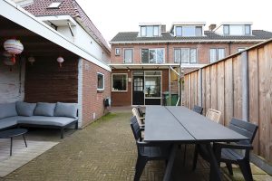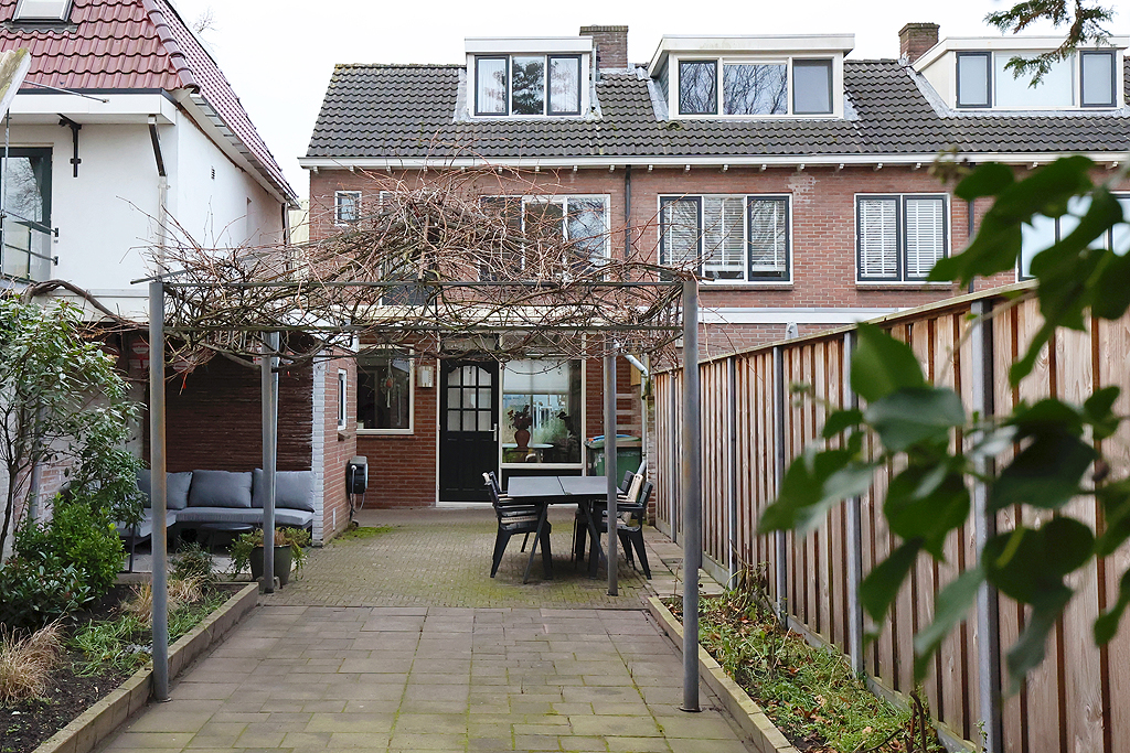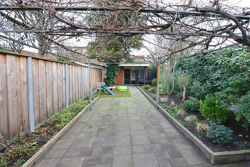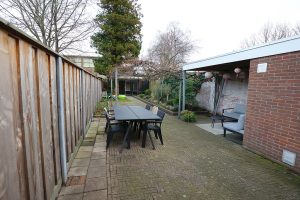 Achter de woning staat een terrasoverkapping en een tweede overkapping achter de bijbouw geeft een heerlijke tweede buiten zithoek. Helemaal achter in de tuin staat de ruime vrijstaande garage. Deze is aan de achterzijde via een oprit aan het eind van het woonblok te bereiken. Met de motor en met de auto. Ook biedt de garage genoeg ruimte voor fietsen en speelgoed.